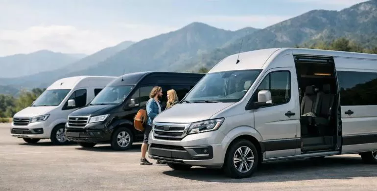 Когато 6, 7 или 8 души тръгнат с отделни коли, планът почти винаги се разваля в движение - различни часове на тръгване, различни разходи, различно място за багаж. При групово пътуване практичното решение обикновено е едно: пътнически бус под наем, избран според реалния брой хора, куфарите и маршрута.